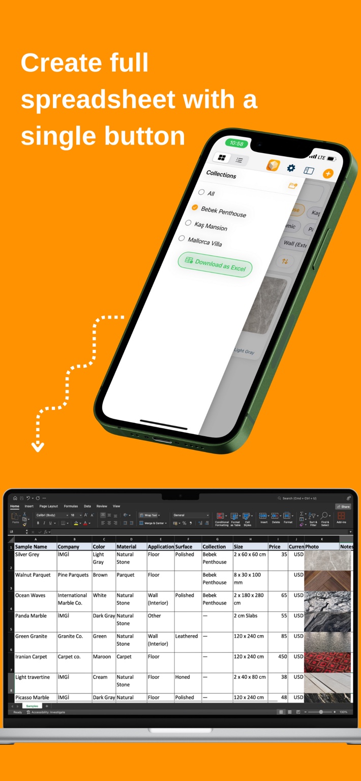 Sample Art is a fast, fully offline sample catalog for architects, designers, and buyers. Snap a photo, get on‑device AI suggestions, and build a clean spreadsheet in one tap.